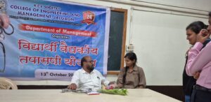 जळगाव – कावयित्री बहिणाबाई चौधरी उत्तर महाराष्ट्र विद्यापीठ, जळगाव यांच्या संलग्न असलेल्या के.सी.ई. इंजिनिअरिंग अँड मॅनेजमेंट महाविद्यालयांत व्यवस्थापन विभागातर्फे विद्यार्थ्यांसाठी आरोग्य तपासणी शिबिर आयोजित करण्यात आले. या शिबिरात विद्यार्थ्यांची वैद्यकीय तपासणी करून त्यांच्या आरोग्याविषयी जागरूकता निर्माण करण्यात आली. या शिबिरात डॉ. महेंद्र पाटील यांनी आपली सेवा प्रदान करून विद्यार्थ्यांची रक्तदाब, वजन, दृष्टी, हिमोग्लोबिन, तसेच सर्वसाधारण आरोग्य तपासणी केली. विद्यार्थ्यांना संतुलित आहार, व्यायाम, आणि नियमित आरोग्य तपासणीचे महत्त्व याबाबत मार्गदर्शनही करण्यात आले. हा उपक्रम महाविद्यालयाचे प्राचार्य डॉ. संजय सुंगंधी सर यांचे प्रेरणेने आणि व्यवस्थापन विभागप्रमुख प्रा. डिगंबर सोनवणे सर यांच्या मार्गदर्शनाखाली यशस्वीपणे पार पडला. या कार्यक्रमाचे आयोजन व समन्वयक प्रा. सुनील विसपुते यांनी केले. विद्यार्थ्यांनी मोठ्या उत्साहाने सहभाग घेत शिबिराचा लाभ घेतला. या उपक्रमाद्वारे विद्यार्थ्यांमध्ये आरोग्याबाबत जागरूकता वाढविण्यासोबतच शारीरिक व मानसिक तंदुरुस्तीचे महत्त्व अधोरेखित करण्यात आले. महाविद्यालयाने अशा उपक्रमांच्या माध्यमातून सामाजिक बांधिलकी आणि विद्यार्थ्यांच्या सर्वांगीण विकासाची दिशा दृढ केली आहे.
