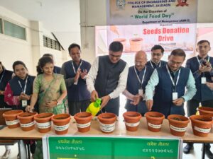 जळगाव- खान्देश कॉलेज एज्युकेशन सोसायटीचे कॉलेज ऑफ इंजिनिअरिंग अँड मॅनेजमेन्ट स्वायत्त महाविद्यालयांत व्यवस्थापन शाखेतील ऍग्री बिझनेस विभागातर्फे १५ ऑक्टो जागतिक अन्न दिवस २०२५ चे महत्व लक्षात घेऊन ”एक मुठ्ठी अनाज व लोकांना बी व बियाणे मोफतउपलब्ध करून देणे”या कार्यक्रमाचे आयोजन करण्यात आले होते . जगातील सुमारे ७०० दशलक्ष लोक दररोज भुकेने त्रस्त असतात, तर अधिकाऱ्यांच्या आकडेवारीनुसार दरवर्षी कोट्यवधी लोक अन्नाच्या अभावामुळे मृत्युमुखी पडतात. खास करून विकसनशील देशांमध्ये ही समस्या अधिक गंभीर आहे. गरीब लोकांपर्यंत पोहोचणाऱ्या अन्नाचा योग्य वापर आणि वितरण, कृषी उत्पादनात सुधारणा करणे आणि पर्यावरणपूरक तंत्रज्ञानाचा अवलंब करणे यामुळे या समस्येवर काही प्रमाणात मात होऊ शकते. अन्न दिन म्हणजे फक्त एक दिवस नव्हे, तर तो मानवतेच्या सेवेसाठी आणि जगातील प्रत्येक माणसाला मूलभूत गरज असलेल्या अन्नाच्या हक्कासाठी दिलेला एक मोठा संदेश आहे. या दिवसामुळे आपल्याला हे लक्षात येते की, अन्नाचे महत्त्व किती मोठे आहे आणि प्रत्येकाला अन्न मिळावे यासाठी आपल्याला सतत प्रयत्न करत राहावे लागेल.आपल्या छोट्या छोट्या प्रयत्नांनी, शासनाच्या धोरणांद्वारे आणि सामाजिक संस्थांच्या सहकार्याने जगातील भुकेच्या समस्येवर मात करता येऊ शकते. त्यामुळे जागतिक अन्न दिन आपल्यासाठी एक प्रेरणादायी दिवस आहे ज्याद्वारे आपण आपल्या जीवनात अन्नाचे महत्त्व जाणून घेऊ शकतो आणि भविष्यात अन्न सुरक्षा सुनिश्चित करण्यासाठी योगदान देऊ शकतो.असे महाविद्यालयाचे प्राचार्य डॉ.संजय सुगंधी यांनी भाषणात सांगितले . महाविद्यालयत संकलन केलेलं अन्न पाकीट जळगाव मधील रिमांड होम ला देण्यात आली तसेच कारले,भेंडी,ज्वारी,कोथिबीर यांची बी व बियाणे मोफत पुरविणे या प्रकारची मोहीम” राबविण्यात आली या मोहिमेमध्ये विविध प्रकारच्या बी जेणेकरून त्याचे योग्य वाटप करता येईल. या मोहिमेला सुमंगल एन्टरप्राइझ चे संचालक प्रा. सारिका तोतला यांची प्रमुख पाहुणे म्हणून उपस्थतीत होते . कार्यक्रमाचे आयोजन ऍग्री बिझनेस विभागप्रमुख डॉ. वीणा भोसले व प्रा. तनया भाटिया यांनी केले