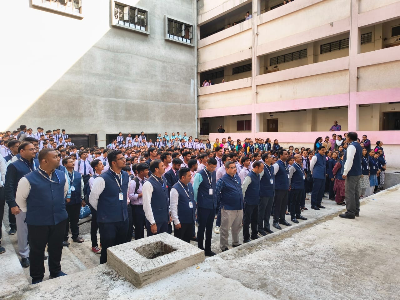जळगाव – ‘वंदे मातरम’ गीताचे सामूहिक गायन – के सी ई इंजिनिअरिंग अँड मॅनेजमेन्ट स्वायत्त महाविद्यालयांत ‘वंदे मातरम’ गीताचे सामूहिक गायन करण्यात आले . राष्ट्रकवी बंकिमचंद्र चॅटर्जी ऐतिहासिक लिखित ‘वंदे मातरम’ या देशभक्तीपर गीताच्या रचनेला १५० वर्ष पूर्ण होत असल्याच्या निमित्ताने ७ नोव्हे २०२५ शुक्रवार ला महाविद्यालयाच्या प्रांगणात सुमारे 1392 विद्यार्थ्यांनी सामूहिक गायन केले . या कार्यक्रमाचे प्रसंगी महाविद्यालयाचे प्राचार्य डॉ संजय सुगंधी ,सर्व विभाग प्रमुख ,प्राध्यापक वृंद ,शिक्षकेतर कर्मचारी ,विद्यार्थी उपस्थित होते