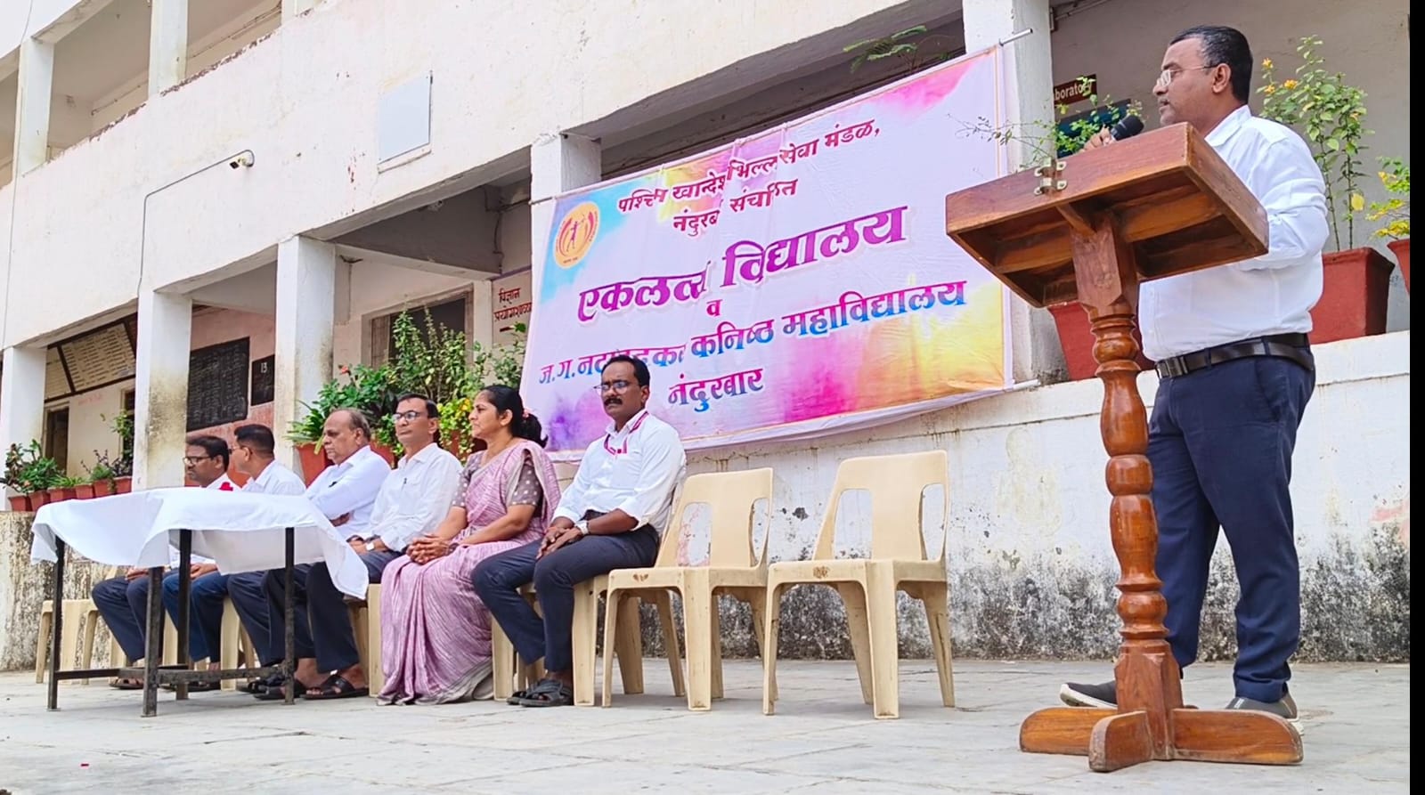 वंदे मातरम् केवळ एक गीत नसून तो असंख्य भारतीयांचा वेदमंत्र आहे. स्वातंत्र्यलढ्यात अनेक देशभक्तांना प्रेरणा देण्याचे, जाज्वल्य राष्ट्रभक्ती जागविण्याचे काम वंदे मातरम ने केले आणि आजही वंदे मातरम तितकेच प्रासंगिक आहे असे प्रतिपादन एकलव्य विद्यालयाचे शिक्षक संतोष पाटील यांनी केले. वंदे मातरम या गीताला 150 वर्ष पूर्ण झाल्यानिमित्त विद्यालयात आयोजित कार्यक्रमात ते बोलत होते. वंदे मातरम् या राष्ट्रीय गीताला 150 वर्षे पूर्ण झाल्याच्या पार्श्वभूमीवर आज एकलव्य विद्यालयात कार्यक्रम घेण्यात आला. या कार्यक्रमाच्या अध्यक्षस्थानी विद्यालयाच्या माजी मुख्याध्यापिका सुहासिनी नटावदकर होत्या. आपल्या संबोधनात संतोष पाटील यांनी वंदे मातरम या गीताचा इतिहास सांगितला. ते म्हणाले की कोणत्याही आंदोलनात एखादी विशिष्ट घोषणा, एखादे विशेष गीत त्या आंदोलनाला चालना देत असते, लोकांमध्ये स्फूर्ती निर्माण करत असते. भारताच्या स्वातंत्र्य लढ्यात ही भूमिका वंदे मातरम या गीताने निभावली. जगाच्या पाठीवर भारत माता म्हणणारा भारत हा एकमेव देश आहे. त्यामुळे मातृभूमीला वंदन करणाऱ्या वंदे मातरम या गीतात भारत मातेचे वर्णन आहे. असंख्य क्रांतिकारकांनी वंदे मातरम् म्हणत आपल्या प्राणांची आहुती दिली. केवळ वंदे मातरम् शब्द उच्चारल्यावर ब्रिटिश सरकार खटला दाखल करत असे इतका त्यांना या मंत्राचा धाक होता असे प्रतिपादन त्यांनी केले. आज आपल्याला वंदे मातरम् चे महत्व जाणून घ्यायचे असेल तर त्याचा इतिहास वाचला पाहिजे असे आवाहन त्यांनी केले. याप्रसंगी विद्यालयाचे संगीत शिक्षक रश्मिकांत त्रिवेदी यांनी विद्यार्थ्यांकडून संपूर्ण वंदे मातरम गीत म्हणवून घेतले. याप्रसंगी व्यासपीठावर विद्यालयाचे मुख्याध्यापक सुनील चौधरी, ज्येष्ठ शिक्षक धर्मेंद्र मराठे, टिका पाडवी, मिलिंद वडनगरे उपस्थित होते. कार्यक्रमाचे सूत्रसंचालन गौरीशंकर धुमाळ यांनी केले तर आभार मेधा गायकवाड यांनी मानले.