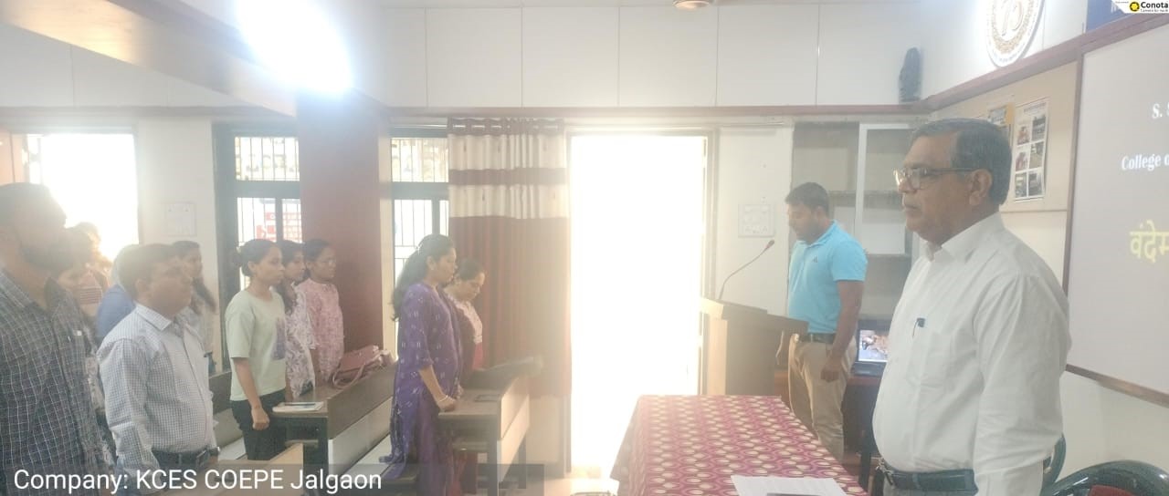 जळगाव -खान्देश कॉलेज एज्युकेशन सोसायटी संचलित व्ही.पी. होले शिक्षणशास्त्र आणि शारीरिक शिक्षणशास्त्र महाविद्यालय (स्वायत्त) जळगाव येथे वंदे मातरम या राष्ट्रीय गीताला दीडशे वर्ष पूर्ण झाल्याच्या निमित्ताने वंदे मातरम गीताचे सामूहिक गायन कार्यक्रमाचे आयोजन करण्यात आले होते. या कार्यक्रमाला अध्यक्षस्थानी महाविद्यालयाचे प्राचार्य डॉ. प्रा. अशोक राणे होते. सर्वप्रथम सामूहिक वंदे मातरम गीत गायन करण्यात आले, त्यानंतर आपल्या अध्यक्षीय भाषणात डॉ. राणे यांनी स्वातंत्र्य पूर्व काळात वंदेमातरम गीताचे योगदान तसेच वंदे मातरम गीताचा अर्थ विद्यार्थ्यांना सांगितला. कार्यक्रमाचे सूत्रसंचालन व आभार राष्ट्रीय सेवा योजनेचे प्रकल्प अधिकारी प्रा.आकाश बिवाल यांनी केले. कार्यक्रमाला सर्व शिक्षक व शिक्षकेतर कर्मचारी उपस्थित होते.