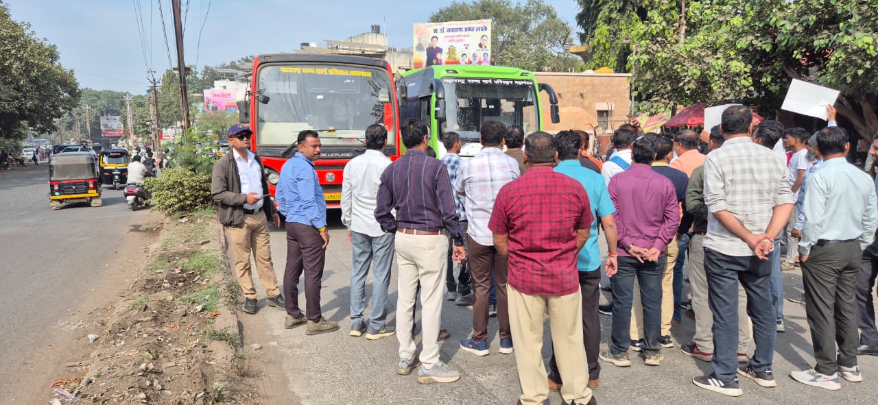 रा.प. जळगांव मध्यवर्ती बसस्थानकाच्या इन व आऊट गेटच्या बाजूला खाद्यपदार्थ / चहा / ज्युस इत्यादी विक्रेत्यांचे मोठ्या प्रमाणात अतिक्रमण वाढलेले असल्याने मध्यवर्ती बसस्थानकातून बाहेरगावी जाणाऱ्या बसेस तसेच बाहेर गावाहून येणाऱ्या बसेस बसस्थानकाच्या आत-बाहेर येण्या-जाण्यास मोठी अडचण निर्माण झालेली आहे. त्यामुळे एसटी कर्मचारी मोठ्या प्रमाणात संतप्त झालेले होते. एसटी महामंडळातील संयुक्त कृती समितीने आज शनिवारी दुपारी 1:30 वाजता जळगाव महानगरपालिकेच्या विरोधात तीव्र निदर्शने केली. याप्रसंगी काही काळ समोरील रस्त्यावरील वाहतूक बंद होती. ‘जळगांव मनपा- हाय हाय, मनपा जळगांव- जागे व्हा जागे व्हा, अशा विविध घोषणा देऊन जळगाव मनपाच्या विरोधात निषेध व्यक्त करण्यात आला. तत्पूर्वी जळगांव मनपाचे अधिकाऱ्यांनी घटनास्थळी भेट देऊन अतिक्रमण धारकांना अतिक्रमण काढण्याचे आदेश दिलेत. परंतु सदर अधिकारी गेल्यानंतर दुकानदारांनी परत अतिक्रमण केल्याचे दिसून आल्याने एसटी महामंडळातील कर्मचारी संतप्त झाल्याचे दिसून आले. जळगांव मनपाने सदर अतिक्रमणाबाबत केलेल्या दुर्लक्षामुळे प्रवासी आणि कर्मचाऱ्यांच्या जीवितास धोका निर्माण होत असल्याचे प्रतिपादन एसटी कामगार सेनेचे श्री आर के पाटील यांनी केले. त्याचप्रमाणे पुढील काळात अशाच पद्धतीचे कामकाज सुरू राहिले तर महानगरपालिका जळगाव समोर आमरण उपोषण करण्यात येईल असा इशारा महाराष्ट्र कामगार संघटनेचे अध्यक्ष श्री विनोद शितोळे यांनी दिला. अनेकदा महानगरपालिकेची पत्रव्यवहार करून देखील दिलासा मिळत नसल्यामुळे अनेक कर्मचारी व प्रवासी यांचा अपघात झाला असून यास मनपा प्रशासन जबाबदार असल्याचे वक्तव्य कृती समितीचे संयोजक गोपाळ पाटील यांनी केले. आंदोलन यशस्वी करण्यासाठी सर्वश्री राकेश वाघ, गोपाळ पाटील, आर के पाटील, अनिल पाटील, विनोद पाटील, खुशाल मोरे यांनी विशेष प्रयत्न केलेत. याप्रसंगी एसटी कर्मचारी मोठ्या संख्येने उपस्थित होते.