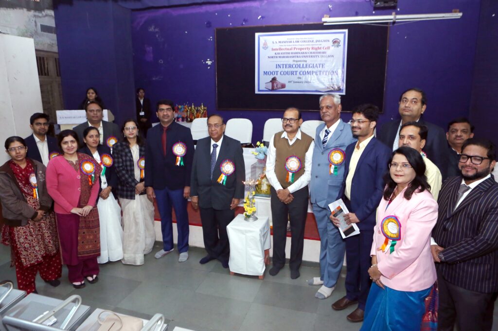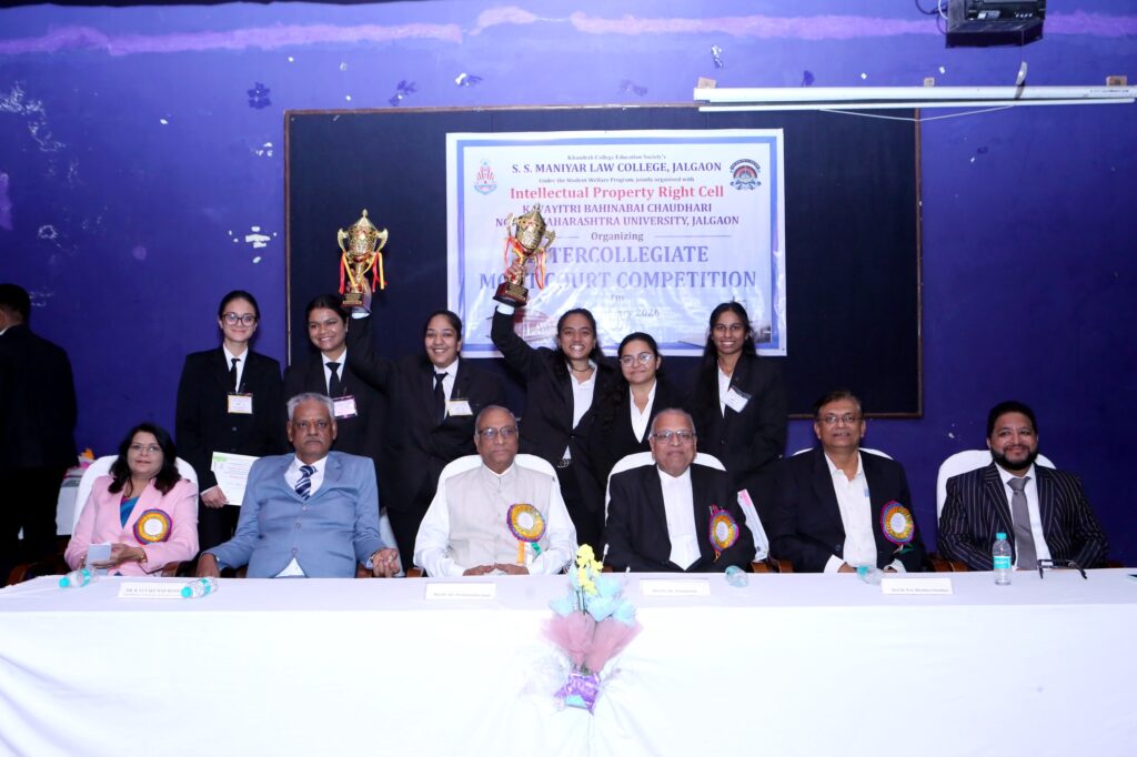 जळगाव : एस. एस. मणियार विधी महाविद्यालय, जळगाव आणि कवयित्री बहिणाबाई चौधरी उत्तर महाराष्ट्र विद्यापीठाच्या बौद्धिक संपदा अधिकार कक्ष यांच्या संयुक्त विद्यमाने विद्यापीठ स्तरीय आंतर-महाविद्यालयीन अभिरूप न्यायालय (मूट कोर्ट) स्पर्धेचे आयोजन करण्यात आले. या स्पर्धेत एस. एस. मणियार विधी महाविद्यालयाने विजेतेपद पटकावले, तर बियाणी विधी महाविद्यालय, धुळे उपविजेता ठरले. उत्कृष्ट पुरुष वकील म्हणून एन. टी. व्ही. एस. विधी महाविद्यालय, नंदुरबारचा विद्यार्थी दर्शन नाथाणी तर उत्कृष्ट महिला वकील म्हणून एस. एस. मणियार विधी महाविद्यालयाची ईशा पिंपळीकर यांची निवड करण्यात आली. बेस्ट मेमोरियलचे पारितोषिक एस. एम. बीयानी विधी महाविद्यालय, धुळे यांना मिळाले.